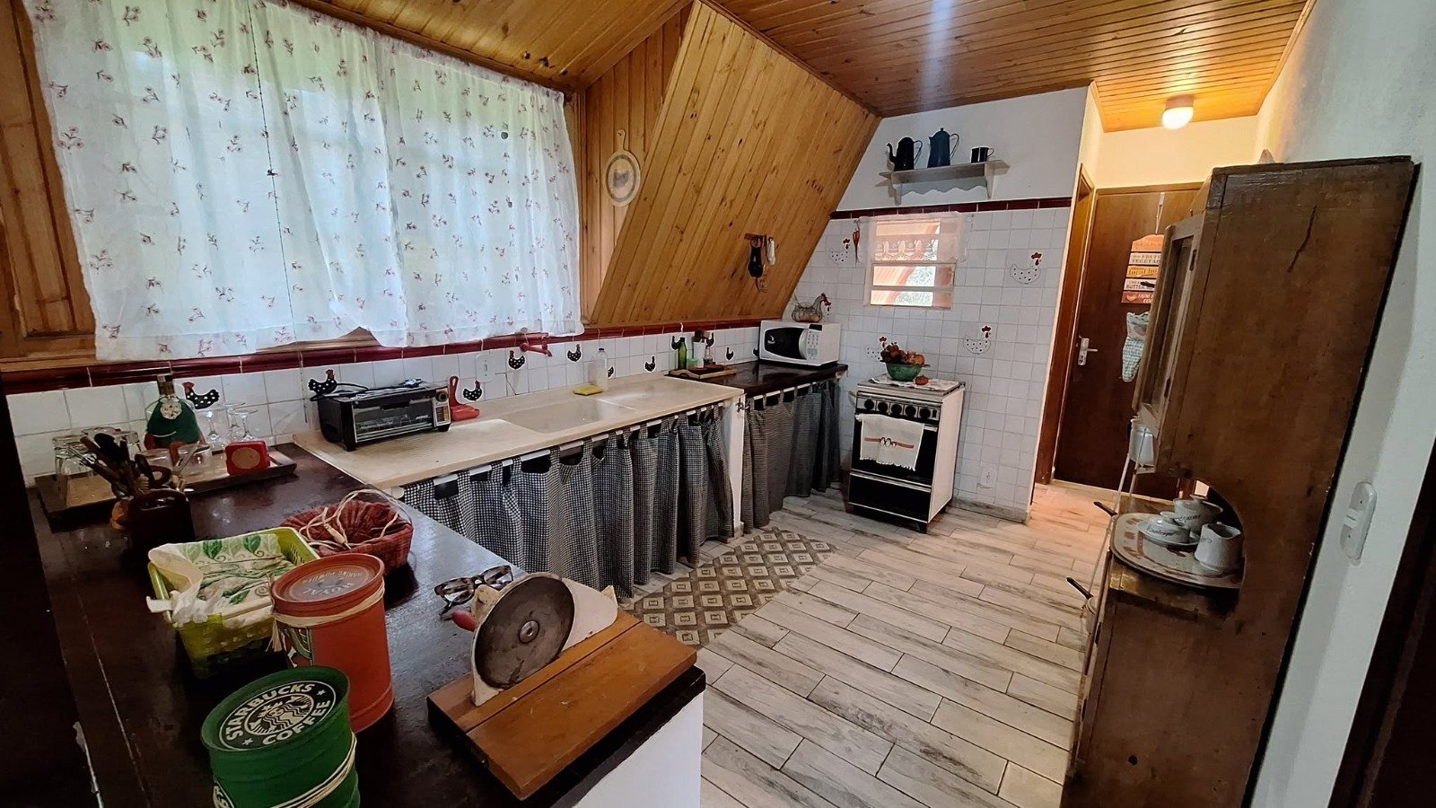 🍳 Cozinha completa (fogão, geladeira, panelas, coador pra café, garrafa térmica, microondas)