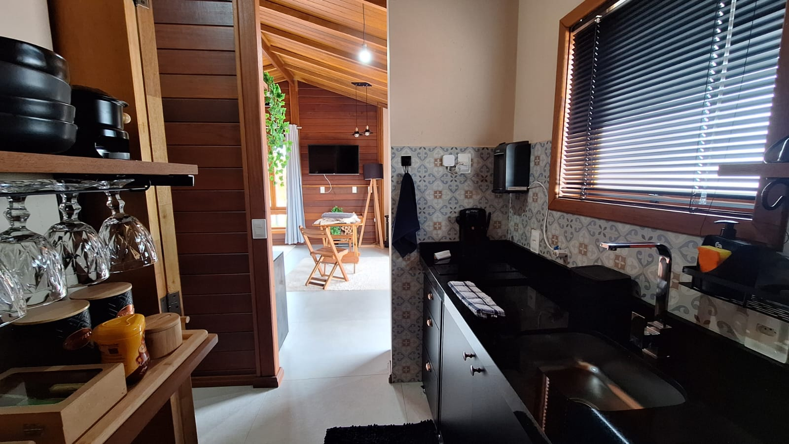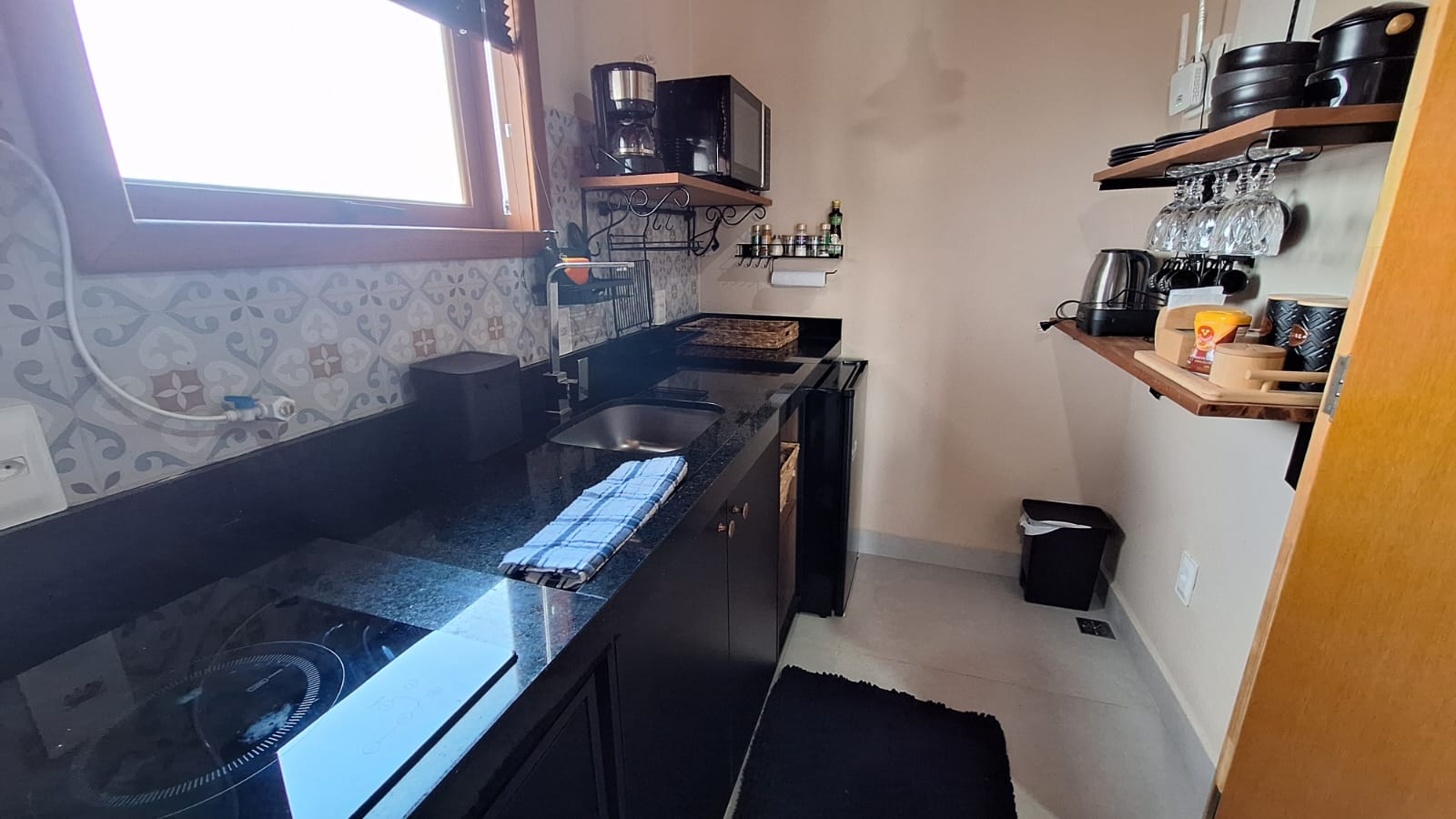 🍳 Cozinha completa (fogão, microondas, chaleira elétrica, panelas, coador pra café, frigobar)