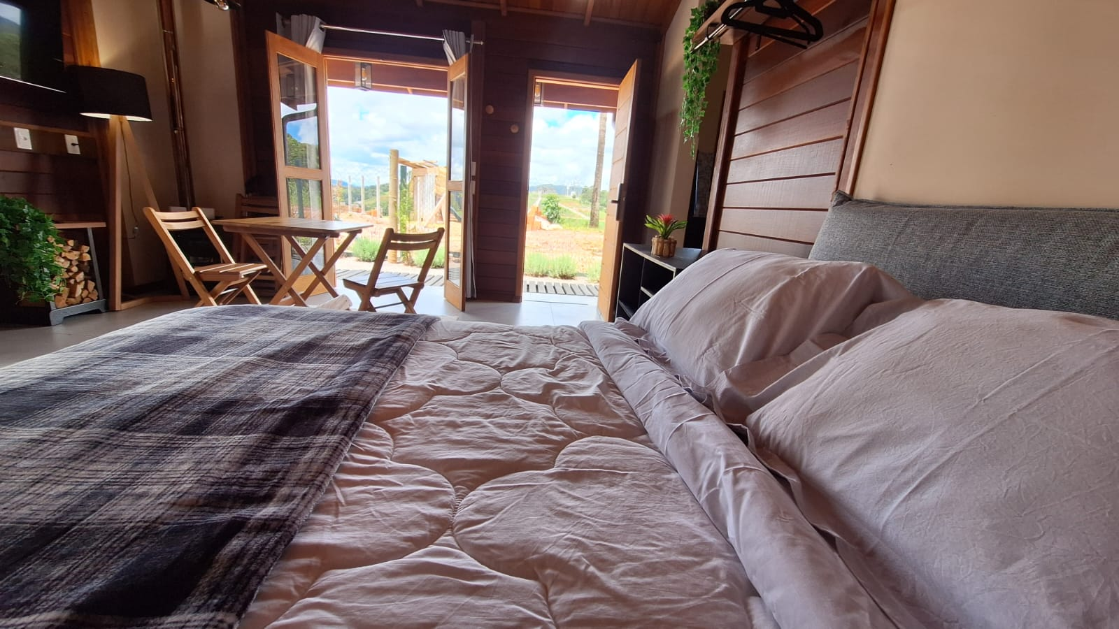 O charme rústico da madeira com todo o conforto moderno. Um ambiente intimista e acolhedor, perfeito para quem busca a verdadeira essência de uma cabana na montanha, sem abrir mão das facilidades contemporâneas.
